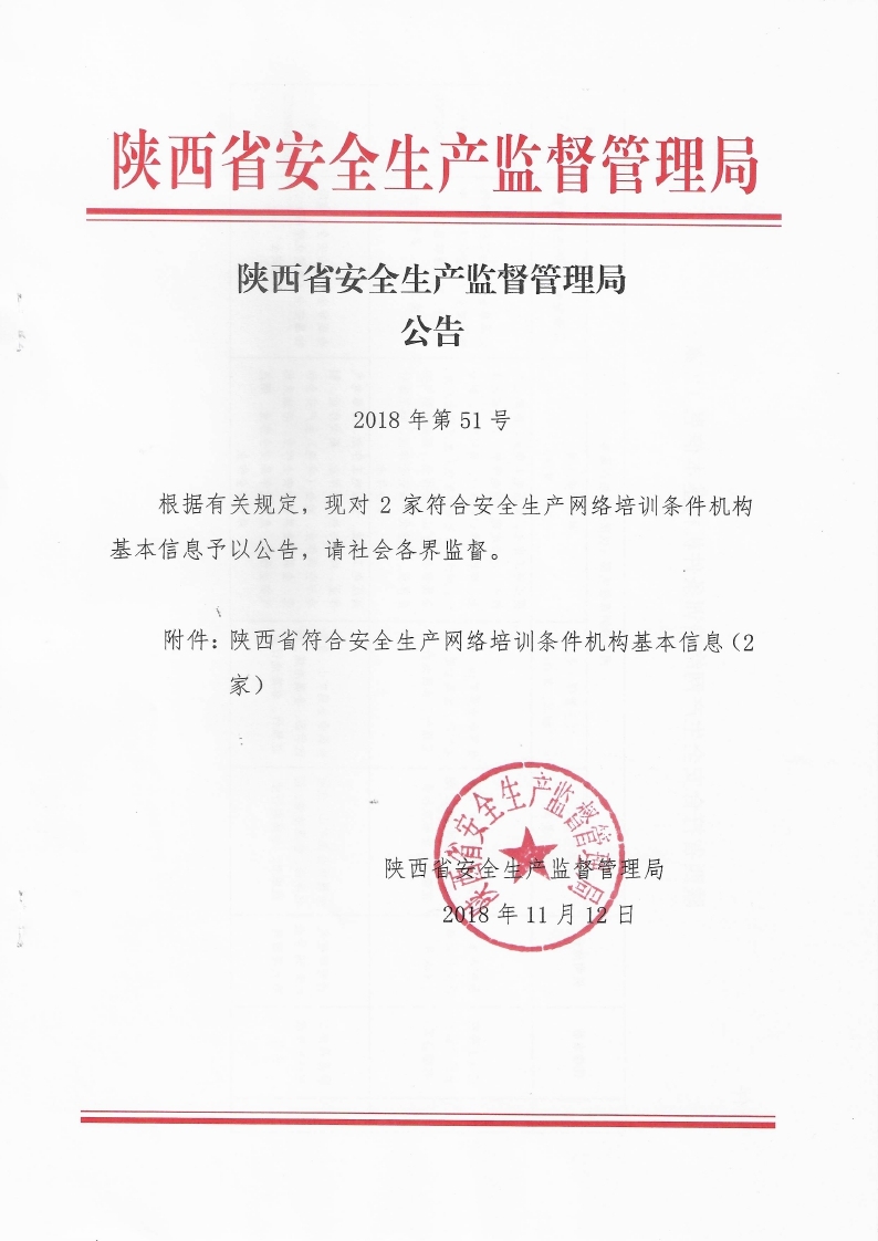 為進(jìn)一步加強(qiáng)注冊安全工程師隊伍管理,提高注冊安全工程師專業(yè)素質(zhì)和執(zhí)業(yè)能力,根據(jù)《注冊安全工程師管理規(guī)定》和陜西省應(yīng)急管理廳注冊安全工程師注冊規(guī)定,陜西鼎祥工程科技有限公司【陜西省安全生產(chǎn)監(jiān)督管理局公告(2018年第51號)】決定舉辦注冊安全工程師繼續(xù)教育網(wǎng)絡(luò)培訓(xùn)班。現(xiàn)將有關(guān)事項通知如下: